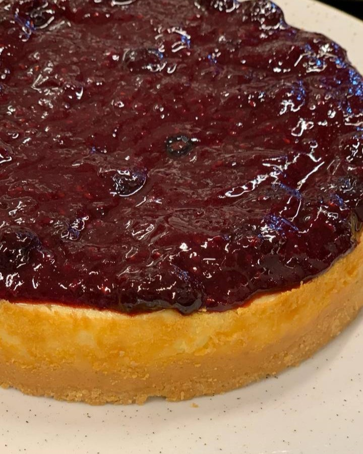Cheesecake de Frutas Vermelhas: base crocante amanteigada, creme de cheesecake aveludado e levemente ácido, finalizado com calda artesanal de frutas vermelhas.